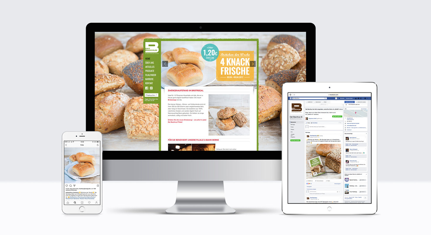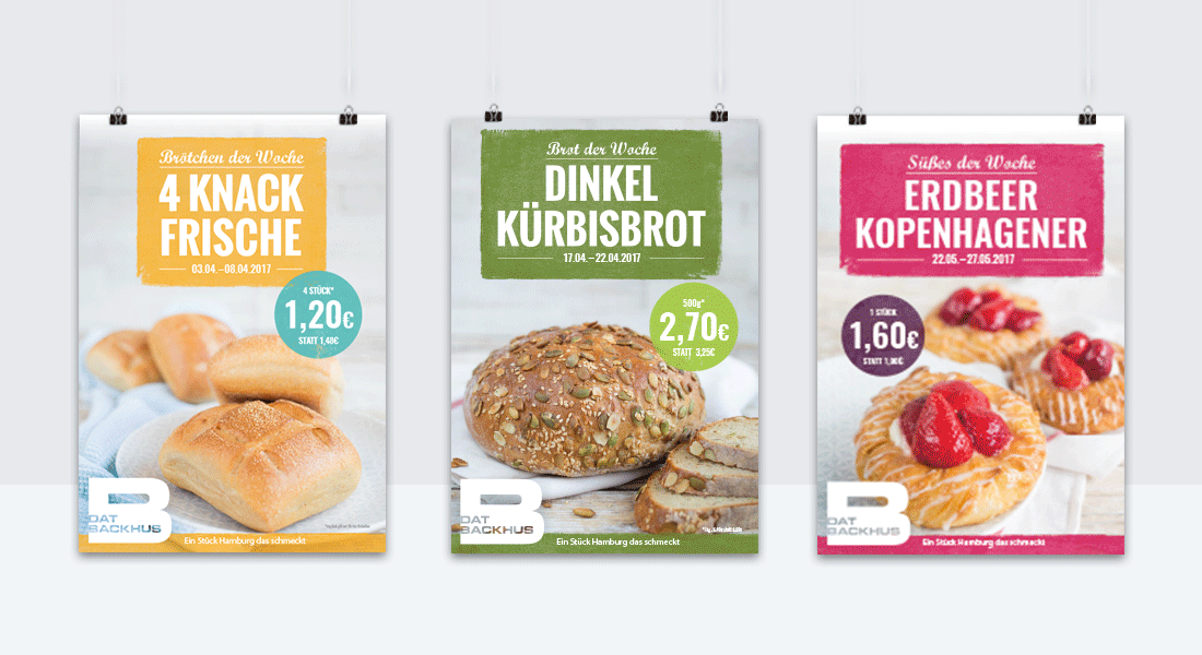 "Dat Backhus", a German bakery chain, needed a relaunch of their brand identity. The aim was to appear more modern and fresh but still convey the traditional values: quality, artisanry and regionality (from Hamburg, for Hamburg)